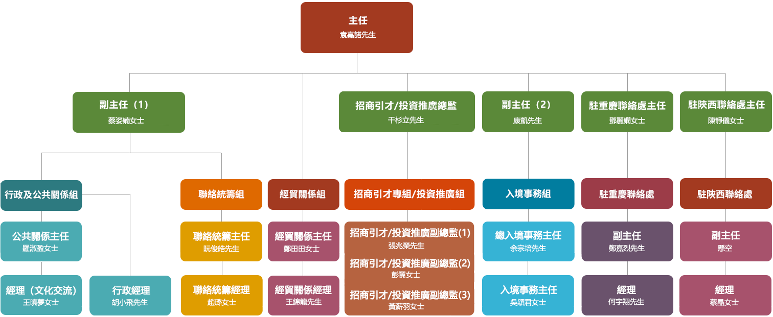為加強和深化香港與重慶市和陜西省的聯繫和合作,特區政府分別於2012年1月及2017年4月在重慶市和西安市成立隸屬於駐成都辦的駐重慶聯絡處和駐陜西聯絡處。